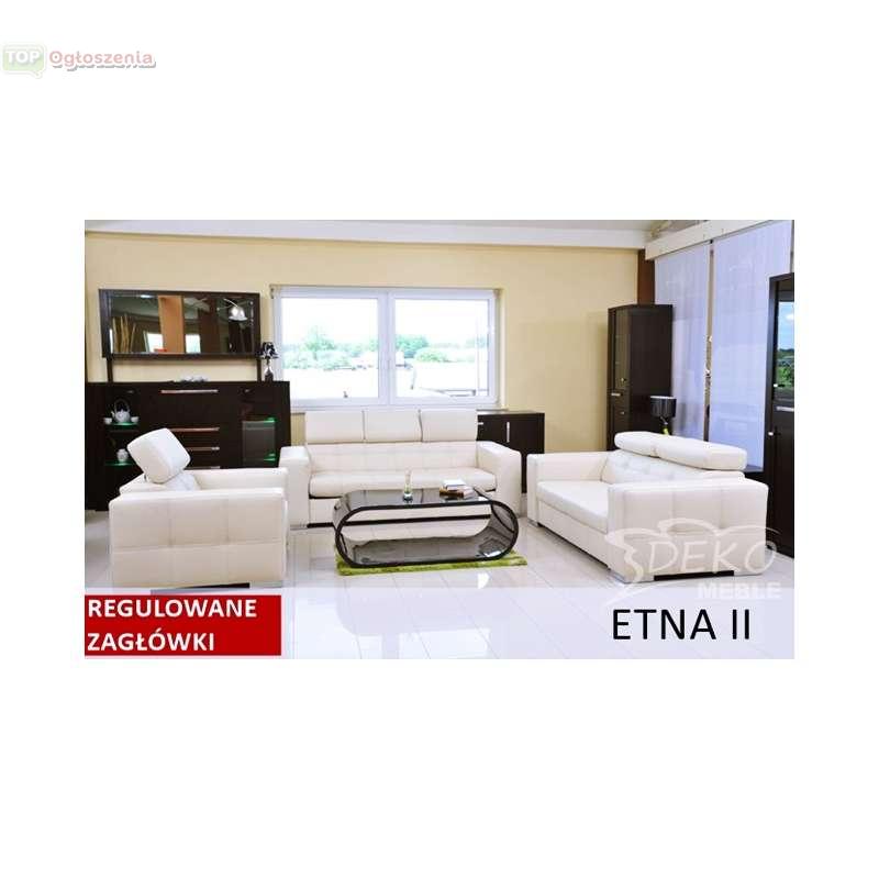 Prostą linię mebli Etna wzbogacają efektowne pikowania po bokach oraz praktyczne zagłówki. Perfekcyjne wykonanie, prosty, subtelny kształt i chromowane nóżki sprawiają, że komplet wygląda wyjątkowo.