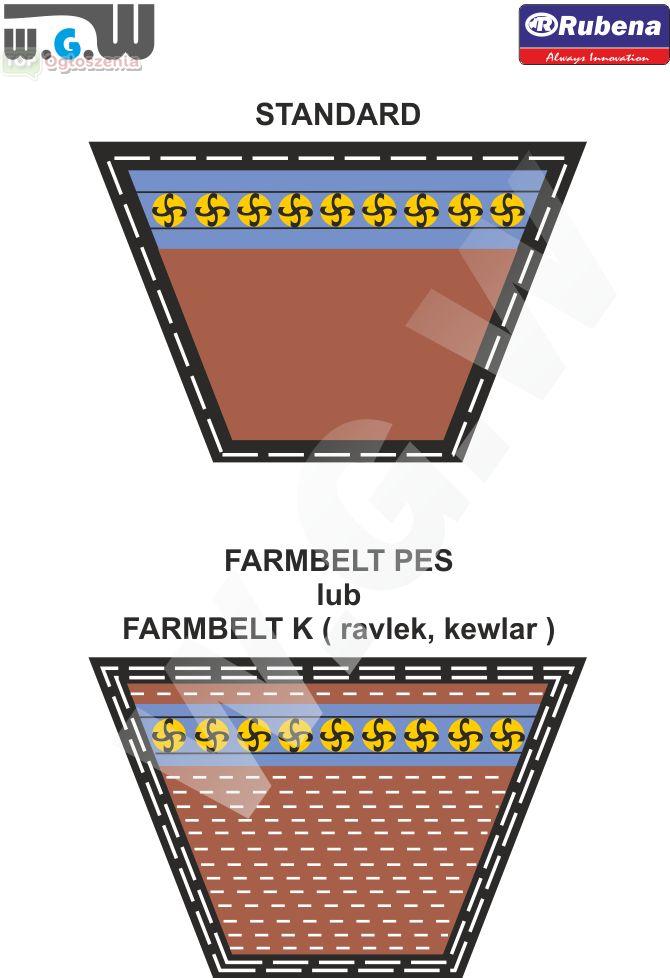 Pasy Farmbelt - K ( kewlar ) przeznaczone są do maszyn gdzie występują silne wstrząsy i przeciążenia. Idealnie nadają się do kombajnów i maszyn rolniczych. Dzięki zastosowaniu aramidowych przewodów, znacznie zmniejszyła się podatność na rozciąganie.