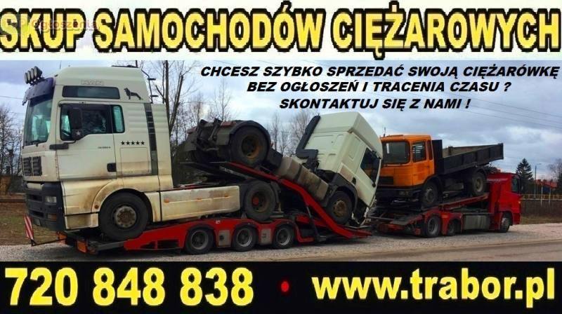 Chcesz szybko sprzedać swoją ciężarówkę bez ogłoszeń i tracenia czasu? Skontaktuj się z nami! Przyjedziemy, uzgodnimy cenę, do każdego klienta podchodzimy indywidualnie. Prowadzimy skup ciągników siodłowych STANDARD i MEGA oraz samochodów ciężarowych 4x2, 4x4, 6x2, 6x4, 6x6, 8x4, 8x8 takie jak: wywrotki, gruszki do betonu, śmieciarki, asenizacyjne, skrzyniowe, chłodnie, autocysterny itp. Interesują nas pojazdy w każdym stanie technicznym, zarejestrowane, wyrejestrowane, a także do złomowania.