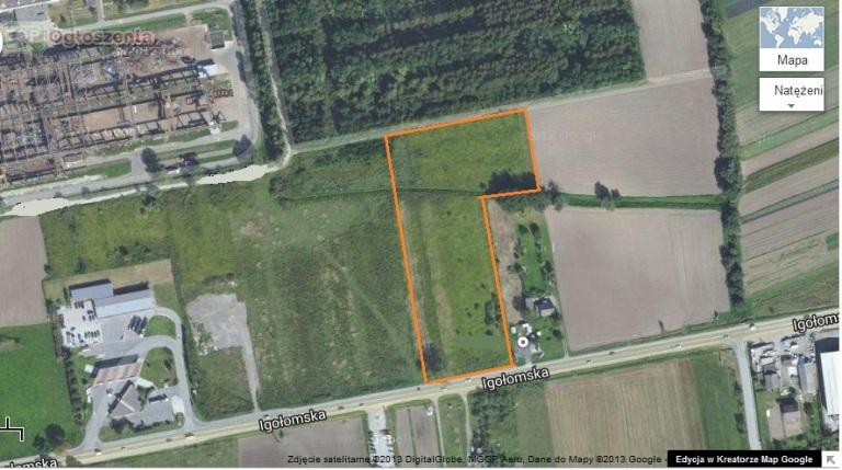 Przedmiotem sprzedaży jest nieruchomość gruntowa niezabudowana, o powierzchni 1,305 ha. Zlokalizowana jest w Krakowie, Dzielnica Nowa Huta, w Obrębie Kraków Ruszcza. Składa się z dwóch przylegających do siebie prostokątów. Działka ustawna, teren równy, zakrzaczony. Dojazd do działki bezpośrednio z ruchliwej drogi głównej asfaltowej. Media – prąd przy drodze. W pobliżu działki znajduje się mały bar, przedsiębiorstwo Złomex S.A, składy budowlane, a z zachodniej strony działki zakłady produkcyjne RP DONNELLEY oraz dwie stacje benzynowe. Działka objęta jest MPZP – są to tereny Parków Technologicznych i Usług Komercyjnych (obiekty produkcyjne wysokich technologii, działalność usługowa, komercyjna, handel detaliczny i hurtowy, wielkopowierzchniowe obiekty handlowe, obiekty wystawiennicze, usługi techniczne, motoryzacje, stacje paliw, obiekty biurowe i administracyjne). Około 1,5 km od działki – zabudowa domków jednorodzinnych. W najbliższych latach ruszy tzw. wschodnia obwodnica Krakowa, która będzie obejmowała trasę do ul. Igołomskiej .