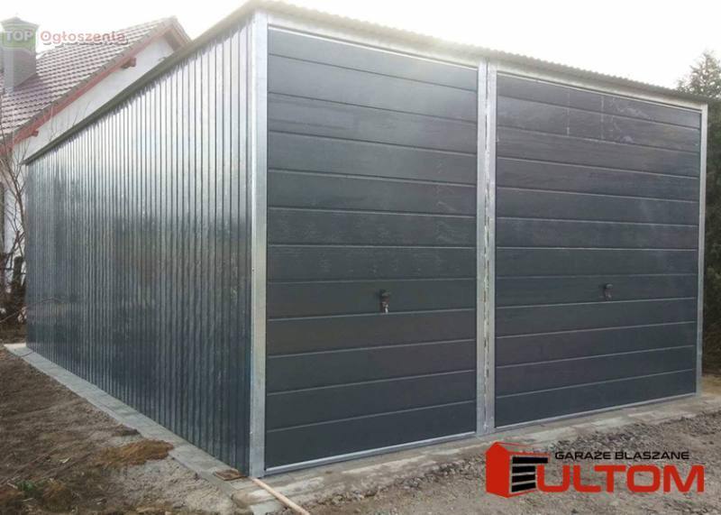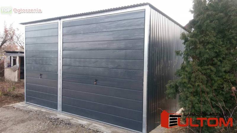 Garaż wykonany jest z blachy w kolorze grafitowym (do wyboru inne kolory w ofercie).