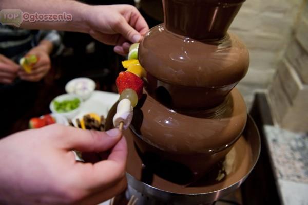 Czteropiętrową fontannę a z niej spływającą kaskadę najlepszej jakości belgijskiej czekolady. Wokoło zaś kawałki owoców, lekkie pianki, ciasteczka, rurki, które zatapiacie w płynnej czekoladzie. Tak niesamowity widok oraz wspaniała woń gorącej czekolady stanie się pokusą dla gości i rozkoszą dla ich podniebienia, dzięki czemu na długo zapamiętają ten słodki poczęstunek.