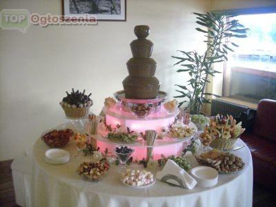 Oferujemy Państwu profesjonalną fontannę czekoladową 85 cm mogąca obsłużyć do 170 gości a także przygotowanie przekąsek a to w wszystko w atrakcyjnej cenie z dojazdem i uruchomieniem fontanny gratis.