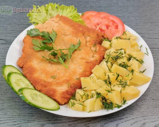 1. Pomidorowa z ryżem 450ml + kotlet schabowy 150g + ziemniaki 300g + kapustą zasmażaną 150