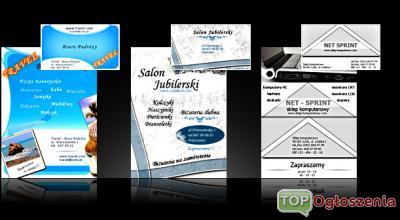Projektowanie wizytówek, ulotek, banerów, plakatów, folderów, zaproszeń oraz tworzenie stron i wizytówek internetowych.Zapewniamy oryginalne pomysły, dobry kontakt z klientem i konkurencyjne ceny ( projekty już od 20 zł ). Napisz do nas lub zadzwoń a od razu wycenimy Twoje zlecenie. Jeżeli masz swoją wizję na