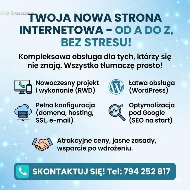 Wykonuję strony internetowe kompleksowo - od A do Z, czyli Ty zlecasz, a ja zajmuję się całą resztą.