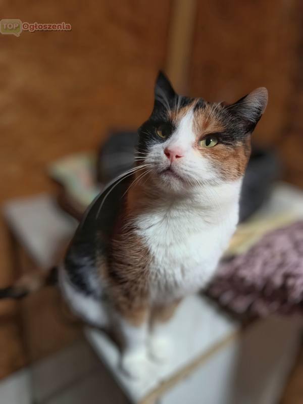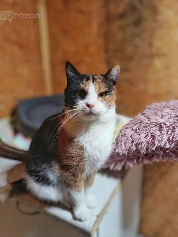 Frytka to młoda, pełna uroku kotka o niepowtarzalnym umaszczeniu w trzech kolorach.